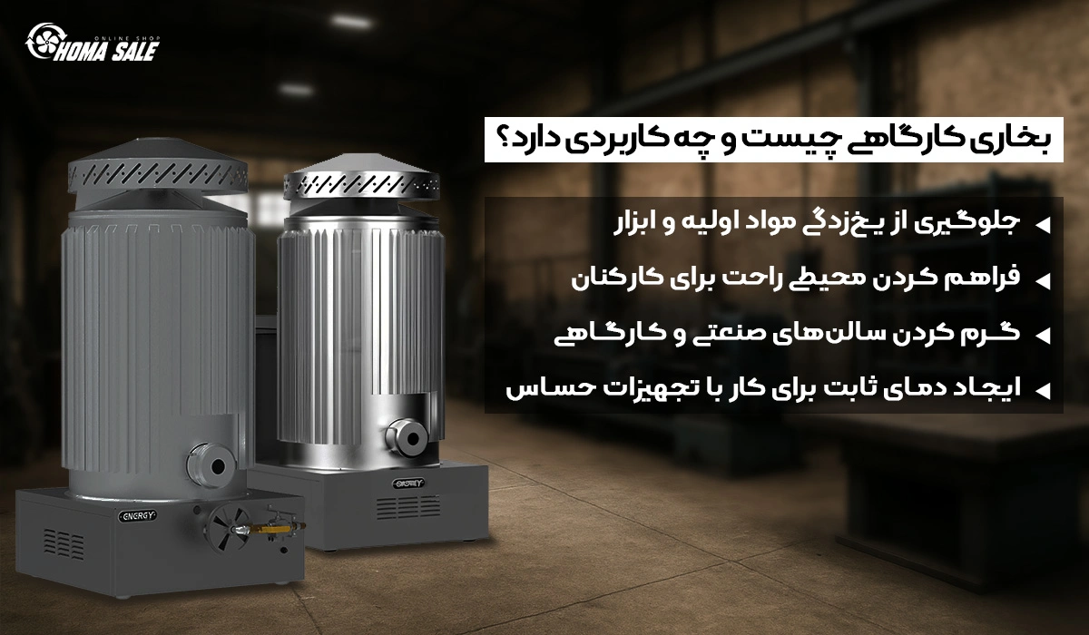 بخاری کارگاهی دستگاهی برای تأمین گرمایش در فضاهای بزرگ و نیمهباز مثل کارگاهها، انبارها، سالنهای تولیدی و حتی تعمیرگاههاست. این بخاریها برخلاف بخاریهای خانگی، قدرت بیشتری دارند و میتوانند در مدت کوتاهی حجم زیادی از هوا را گرم کنند. انتخاب نوع بخاری به شرایط محیطی، اندازه فضا و نوع سوخت مورد استفاده بستگی دارد. کاربردهای اصلی بخاری کارگاهی عبارتاند از: