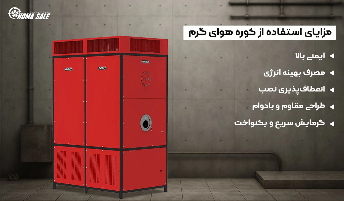 استفاده از کوره هوای گرم انرژی، به دلیل طراحی صنعتی و عملکرد بهینه، مزایای قابل توجهی برای محیط‌های صنعتی، کارگاهی و نیمه صنعتی فراهم می‌کند. این دستگاه‌ها با توزیع یکنواخت حرارت، مصرف بهینه انرژی و انعطاف‌پذیری در نصب، تجربه گرمایش مطمئن و اقتصادی را ارائه می‌دهند.